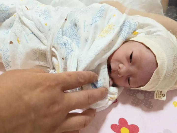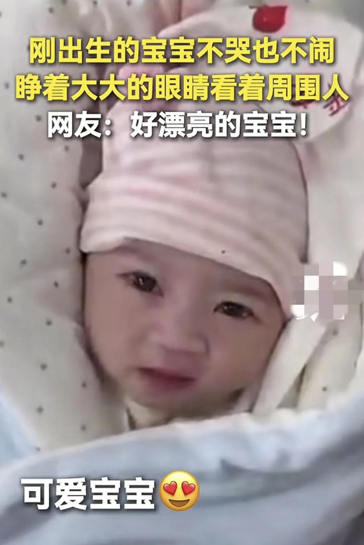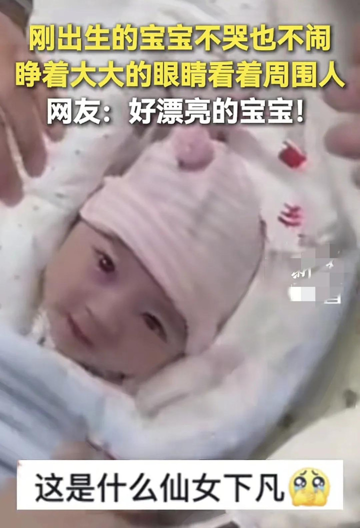 我要看视频里面的孩子确实不像一个新生儿,大部分新生儿刚出生的时候头都是尖尖的,这个孩子戴着帽子,虽然没有看到头有没有尖,但是帽子中可以看到孩子的头型应该还是蛮好的。